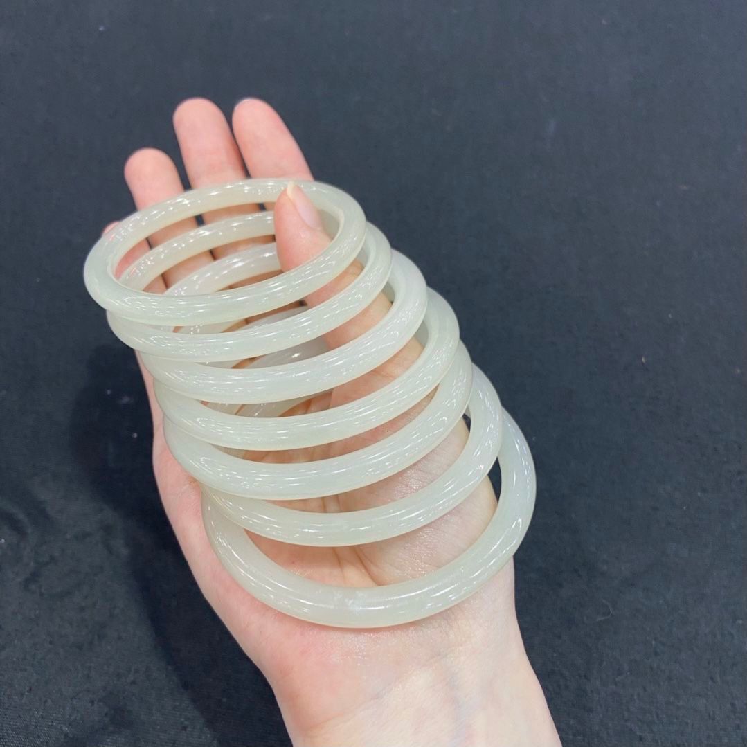 Ice-like Greenish White Jade Thin Round Bar Non-Hetian Suet Bracelet